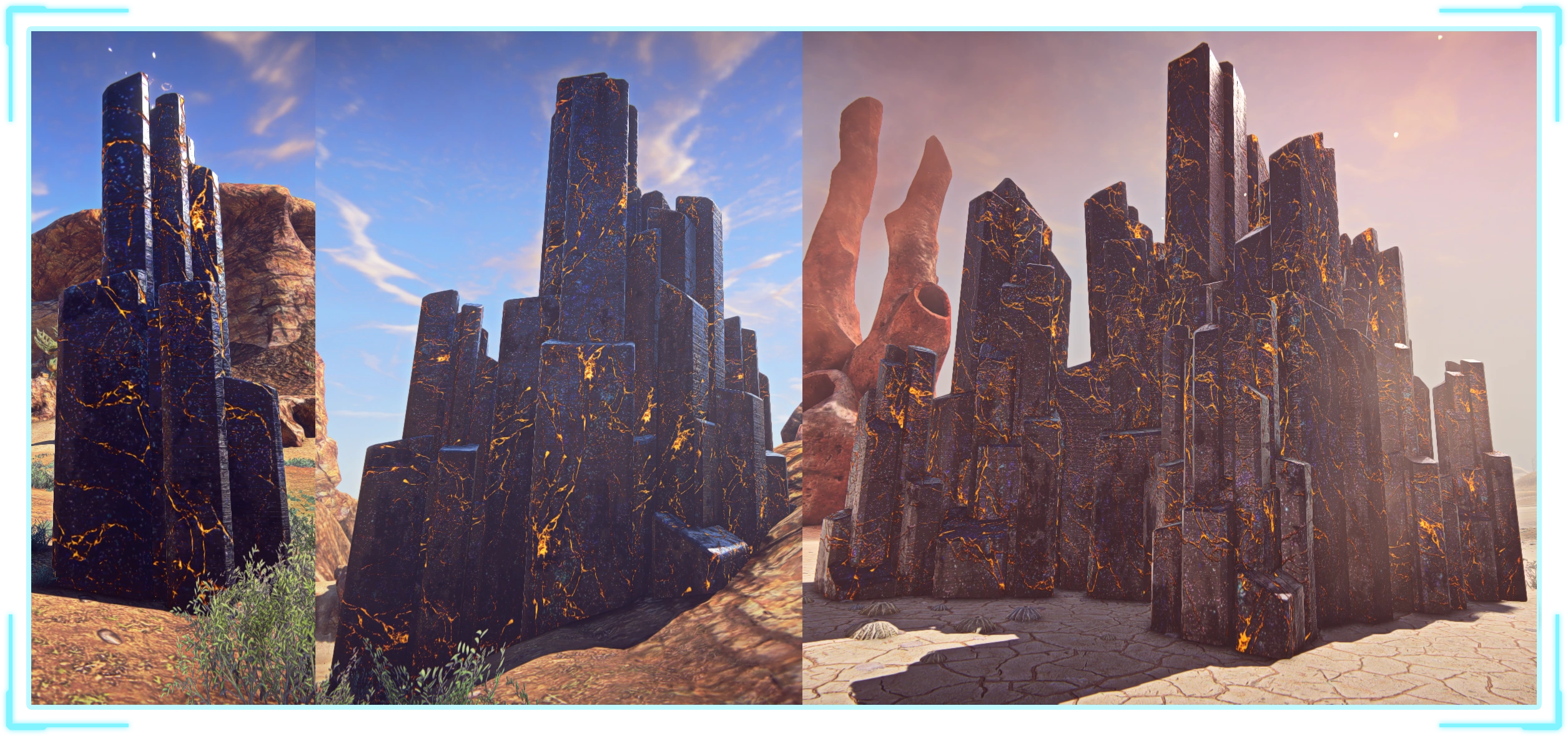 Cortium is found on all non-VR continents of Auraxis except Koltyr. It is typically found in open fields away from outposts and facilities, appearing as orange-black crystals of various sizes protuding from the ground, crackling with appropriately coloured electricity. Crystals will appear in random locations at random intervals, though tend to be more common near the Warpgates.