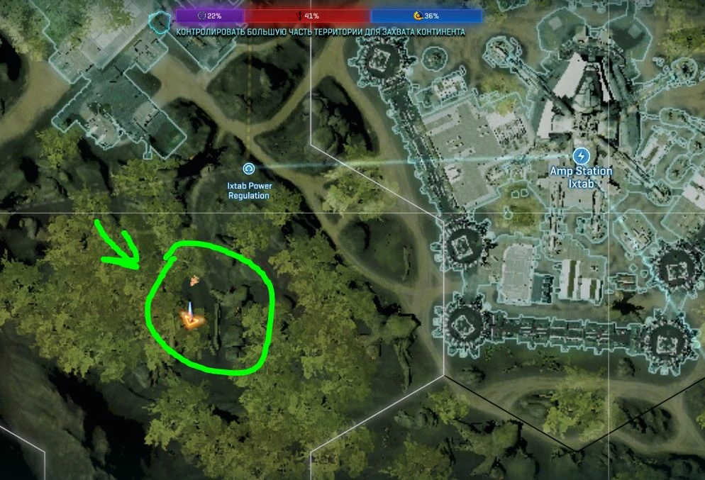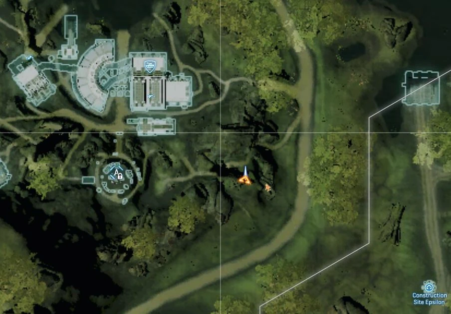 East of Genesis Terraforming Plant, and south of Eastern Substation, between a rock and a stone arch. Grid M10