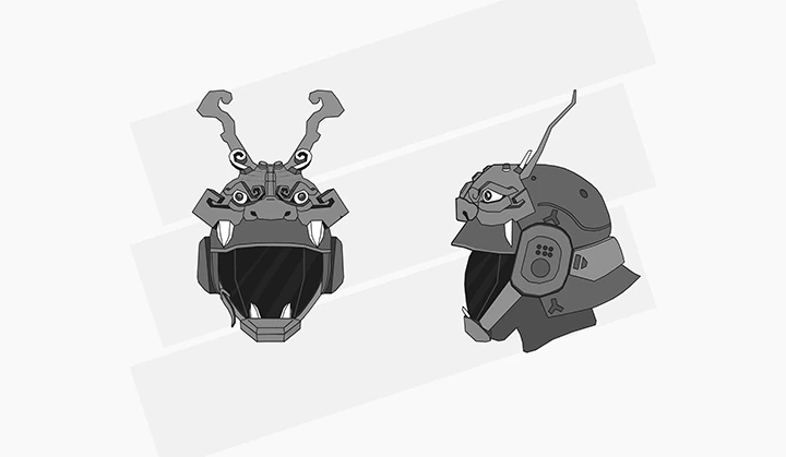 For this month’s dev letter, we wanted to share something a little different – a behind the scenes look at the process our artists go through when creating new items in PlanetSide 2. Our example piece for this behind-the-scenes look is the new Lunar Dragon Helmet available in the Lunar New Year Bundle [2024]. We hope you enjoy a peek behind the curtain!