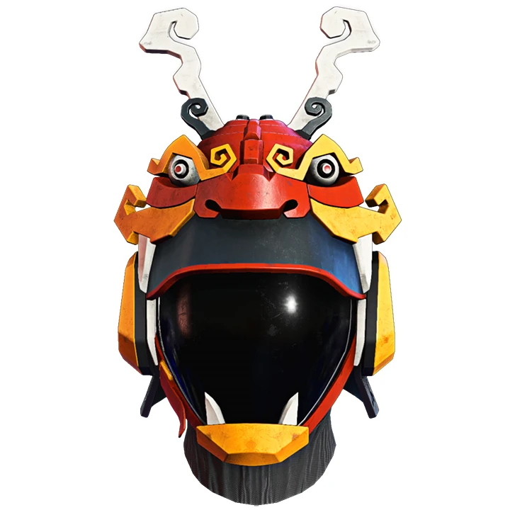 From here the idea is born and we have a helmet influenced by Asian cultures in the PlanetSide 2 style. It incorporates a dragon head, red and yellow as the primary colors, and faction specific tints for additional details.